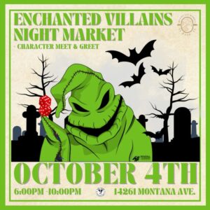 Join us on Friday, October 4th from 6pm to 10pm for a magical, spooky evening at The Yard Patio & Beer Garden! Our Enchanted Villains Night Market features local vendors, delicious food and drinks, and a live performance by El Paso Band. Don’t miss our special character meet & greet—including your favorite villains!