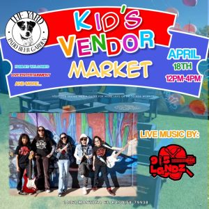 Join us at The Yard Patio Beer Garden in El Paso for our Kids Vendor Market on April 18th from 12 PM to 4 PM. This family-friendly community event celebrates the next generation of young entrepreneurs with shopping, live entertainment, food and drink specials, and a fun atmosphere for all ages.