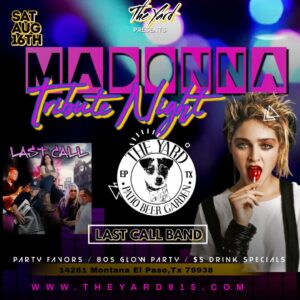 Get ready to turn back time and party like it’s the 1980s! Join us at The Yard Patio & Beer Garden for a Madonna Tribute Night featuring Last Call Band performing all your favorite hits live.