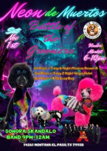 Celebrate Dia de los Muertos in style! Join us for Neon de Muertos – Battle of the Groomers, where local pet groomers will compete live for first, second, and third place. Enjoy a night full of creativity, color, and community fun.