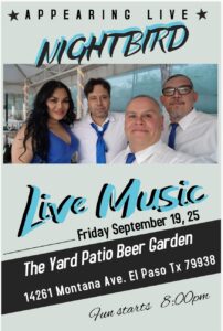 Live Music at The Yard: Nightbird – Friday, September 19th at 8pm